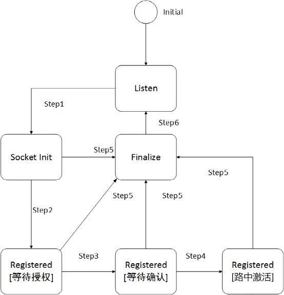 [Step5] 如果initial timer 或general inactivity timer 过期后仍没收到后续请求,或者authentication 和 confrmation 被拒绝了,又或者外部测试设备对alive check 消息没有响应,则逻辑连接进入“Finalize”状态。